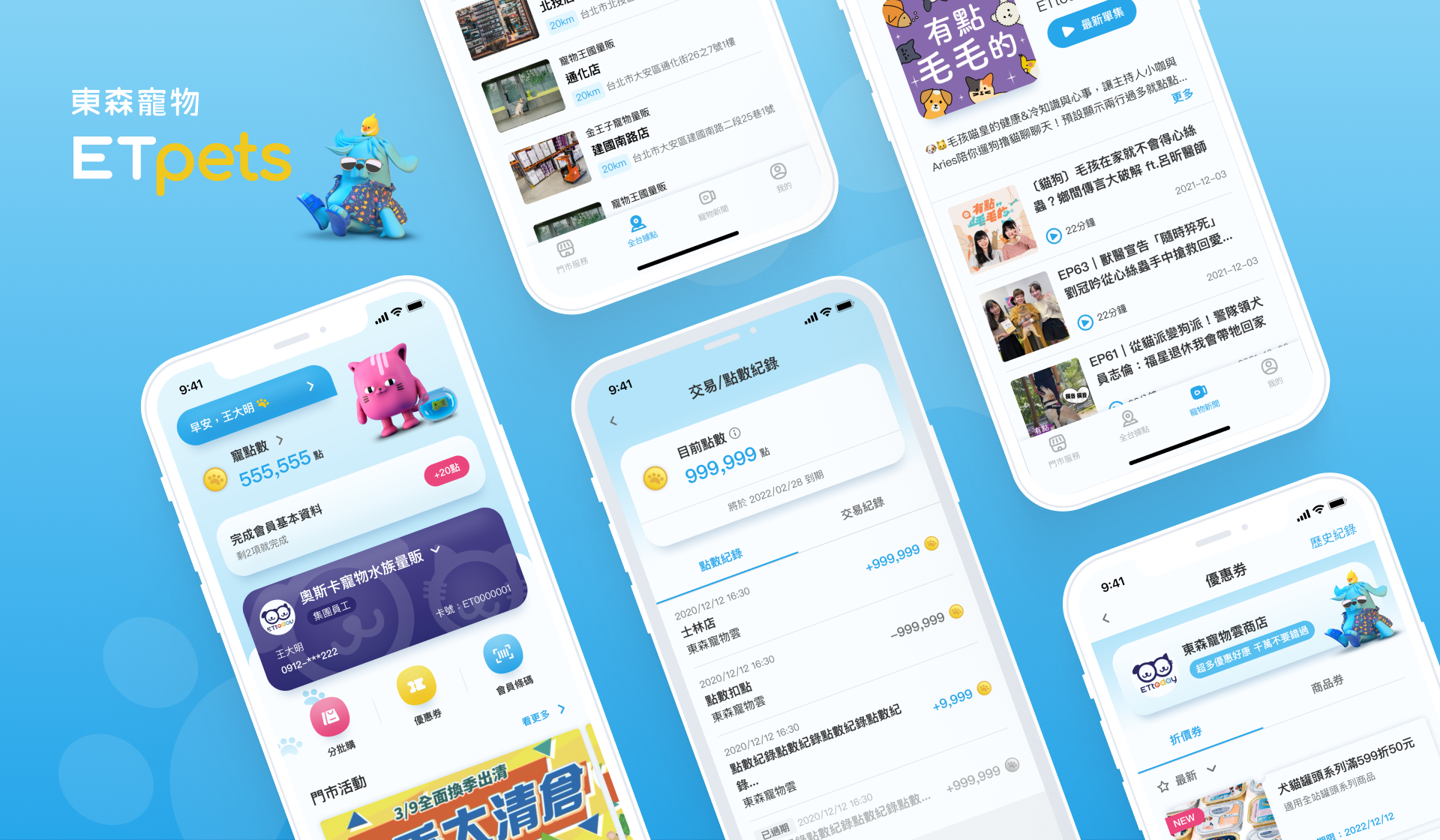 結合東森寵物雲等四間寵物品牌的APP,藉此達到線上線下整合的會員系統。初期功能包含點數、優惠券等線上會員服務,並且納入寵物新聞、podcast等媒體資源。